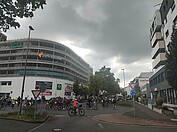 Dann ging es gut gesichert mit Polizei und Ordnern mit ca. 7 km/h, so dass auch die Kleinsten mitkommen, durch die Aschaffenburger Innenstadt. Die Route führte vorbei an den wichtigsten Schulen vorbei kreuz und quer durch die Stadt zur Großmutterwiese.