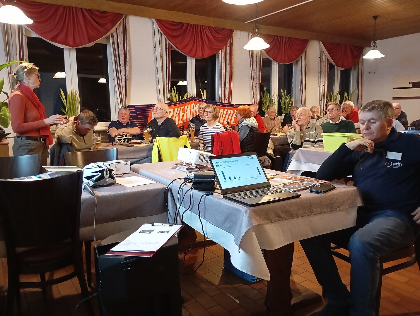 Seit dem März 2019 konnte nun endlich wieder eine Hauptversammlung des ADFC als Präsenzveranstaltung durchgeführt werden. Neben dem Rechenschafts- und Kassenbericht standen diesmal die Neuwahl des Vorstandes und der Delegierten zur Landesversammlung im Vordergrund.
