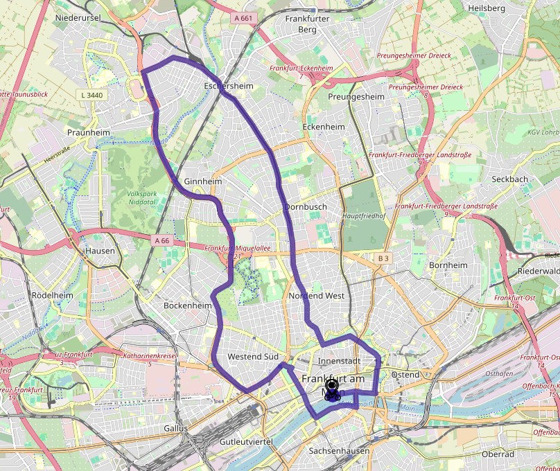 Bei der Rückfahrt „kollidierten“ wir mit dem am gleichen Tag stattfindenden Ironman, so dass wir teilweise eine Ausweichroute wieder über den letzten Hasenpfad fahren mussten, da das Mainufer in Sachsenhausen durch Läufer und Zuschauer belegt war. Über den Stadtwald und die Lange Schneise erreichten wir wieder Aschaffenburg. Durchaus einige km fürs Stadtradeln Aschaffenburg. Die Tour macht Appetit auf mehr. So wollen wir im nächsten Jahr in irgend einer Weise wieder dorthin fahren.