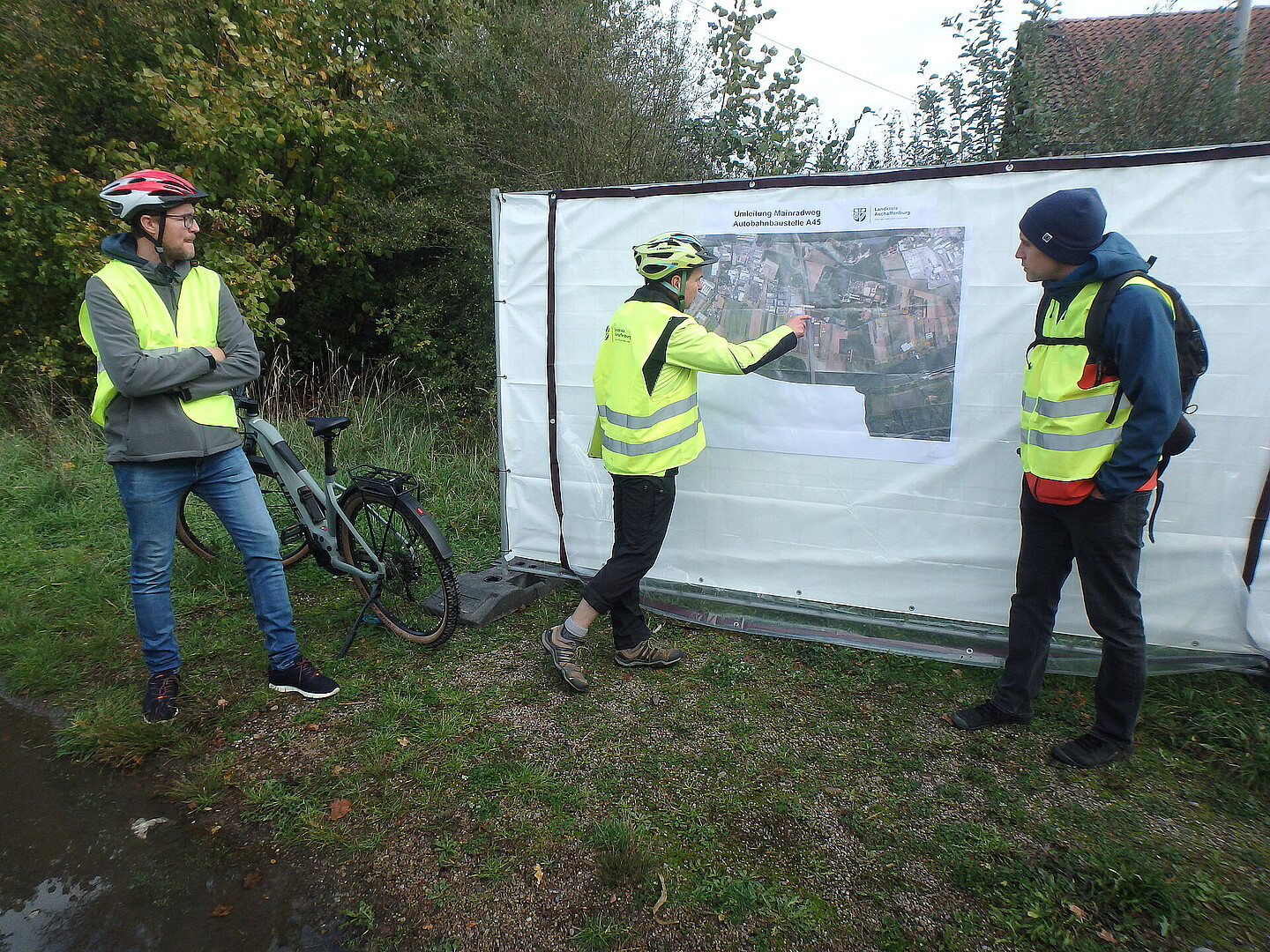 Betreffend des Baustellenmanagements im Rahmen der Baustelle A45-Brücke wurde der Hergang vorgestellt. Die Sperrung Mainradweg läuft bis 2031. Nach einer ersten Umleitungseinrichtung und Anfragen des ADFC wurde die Umleitungsstrecke optimiert und ist sehr gut ausgeschildert.