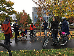 Am 18.10.2019 fuhren die Verkehrsinitiative zusammen mit Experten des ADFC durch Kleinostheim um sich verschiedene Punkte hinsichtlich Radverkehr näher zu betrachten. Kernpunkte waren die Führung entlang der B 8, im Ortsgebiet und die Querungen der Bahn. Teilnehmer waren u.a. die ADFC-Vorstandsmitglieder Manfred Röllinghoff und Dieter Hennecken aus Aschaffenburg, sowie aus den Reihen des Gemeinderates SPD-Gemeinderätin Heidi Bergmann. Vertreten war die VI Kleinostheim mit Sabine Dornberg, Siegfried Gaitzsch, Dr. Helmut Siegert und Olav Dornberg (Fotos). Als Tourenleiter führte Tino Fleckenstein durch Kleinostheim. Das Wetter war zunächst nicht einfach, so dass auch hier galt: Nur die Harten kommen in den Garten!
