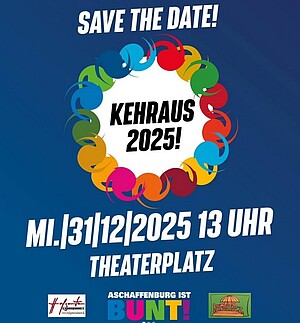 Auch in diesem Jahr gehen der KOMMZ-Freundeskreis für Kultur, das Hofgarten-Kabarett und das überparteiliche Bündnis „Aschaffenburg ist bunt!“ am Silvestertag mit einem bunten und fröhlichen „Kehraus 2025“-Umzug auf die Straße „Unser Ziel ist es, uns weiter einzusetzen für Demokratie, Toleranz, Vielfalt und unsere bunte Stadt – und das Jahresende nicht denjenigen zu überlassen, die mit offen zur Schau getragenem Rechtsextremismus durch unsere Heimatstadt ziehen“.